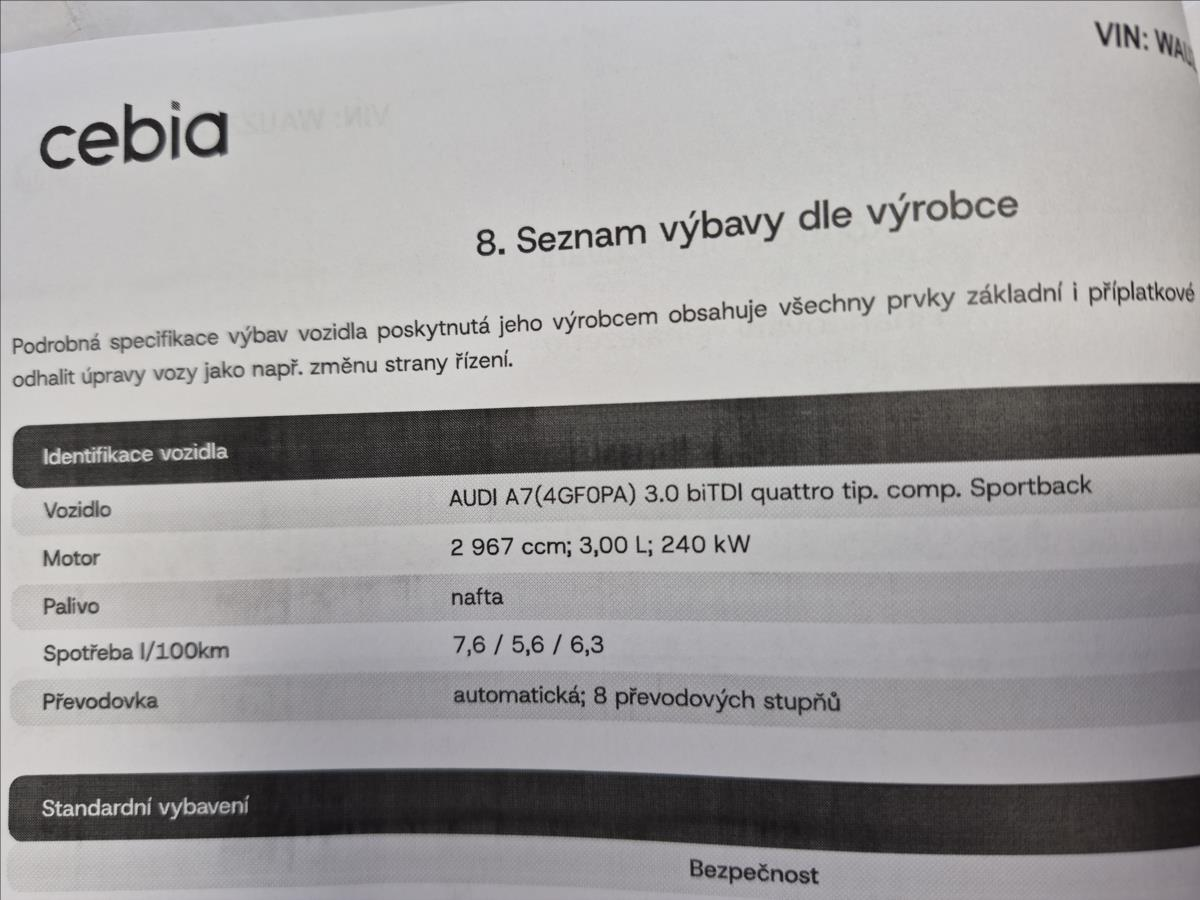 Audi A7 3,0 biTDI V6 S-Line QUATTRO ČR 1.MAJITEL