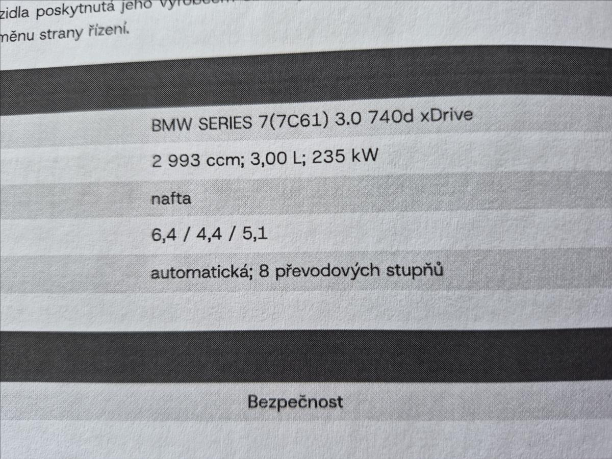 BMW Řada 7 740d xDrive G11 ČR 2.majitel